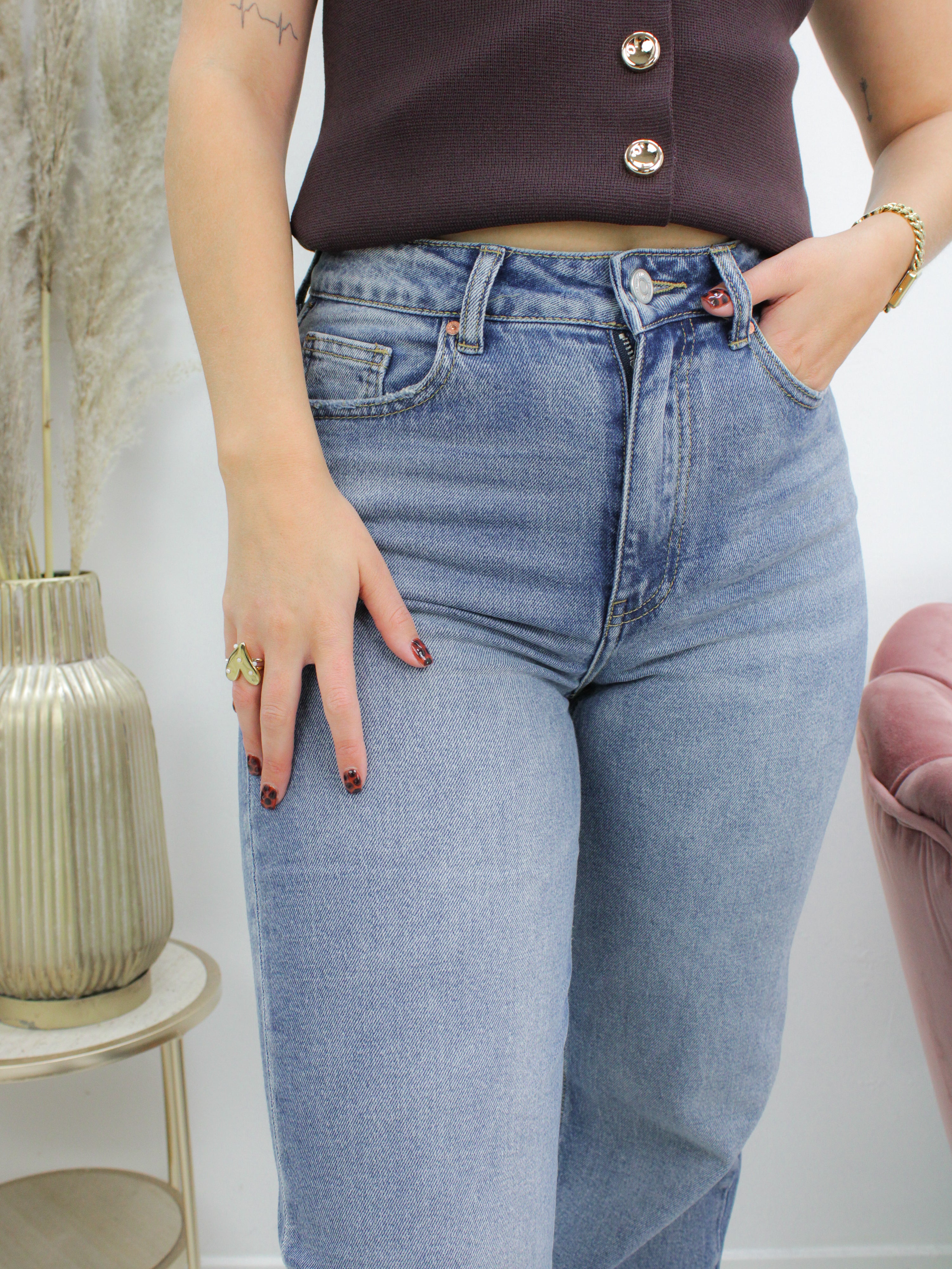 Onze high-waist straight leg jeans is dé perfecte basic die niet mag ontbreken in je kast! De lichte wassing geeft een subtiele, frisse look die je makkelijk combineert – of je nu kiest voor een basic top of een statement blouse.